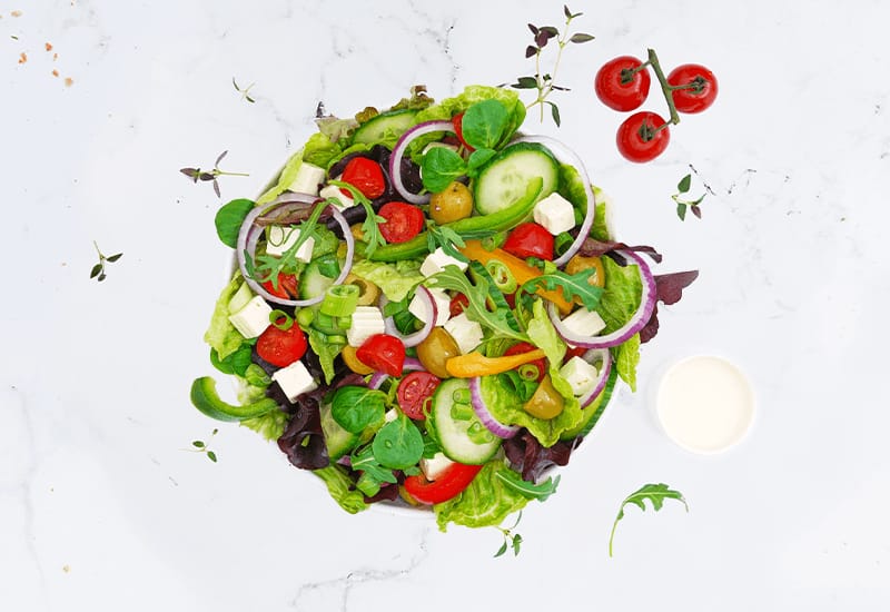 SALAT ATHENA 27. April 2021By wpadmin Gemischter Salat mit Rucola, Gurken, Paprika, roten Zwiebeln, Cherrytomaten, grünen Oliven, würzigem Hirtenkäse und Frühlingszwiebeln Beitragsnavigation Prev postPrev post: