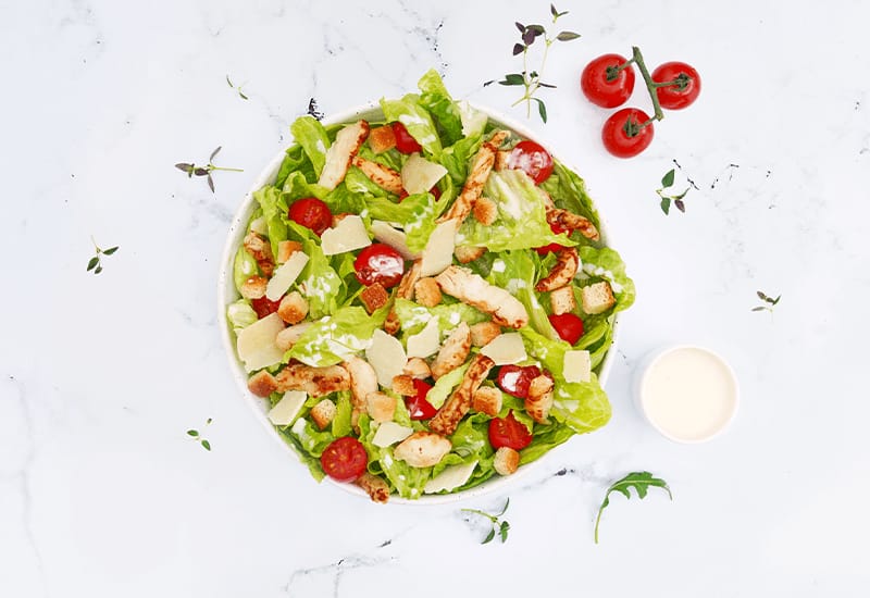 SALAT CAESAR’S 27. April 2021By wpadmin Römersalat mit Cherrytomaten, Hähnchenbrustfilet, italienischem Hartkäse und Croûtons, Caesar’s-Dressing Beitragsnavigation Prev postPrev post: